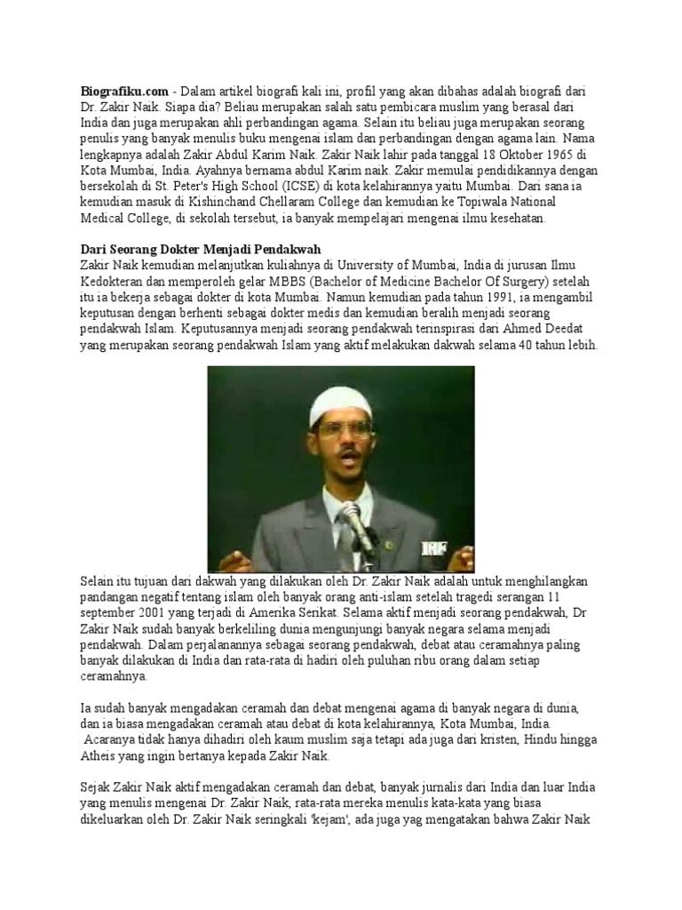 Biodata Dr Zakir Naik / Zakir abdul karim naik tarikh lahir:. Ia mengadakan kunjungan ke pesantren serta ceramah di itulah sedikit informasi mengenai biografi dr. Zakir naik which would put him on the spot? And address is 195/213, svp road, dongri, mumbai, maharashtra, 400009, india zakir abdul karim naik is a speaker on the topic of islam and relative religion in india. The underlying message is that women should be controlled and put behind several layers of. Is the quran god's word?