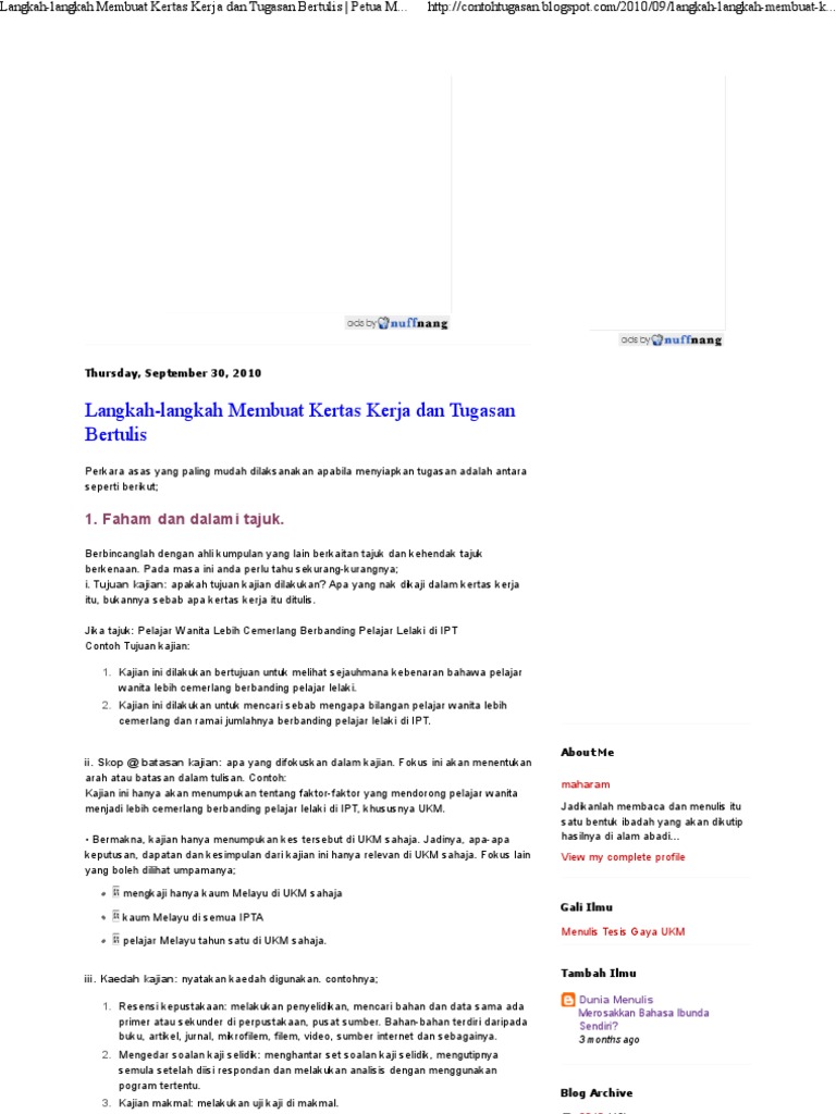 Penubuhan jawatankuasa mempunyai penaung / penasihat programketua pengurusan organisasi tertinggi pengerusi naib pengerusi setiausaha penolong setiausaha (jika pelu) bendahari penolong bendahari (jika perlu) ahli jawatankuasa kecil. Panduan membuat kertas dn cth kertas kerja yg sdh lulus. Menulis kertas kerja akademik tidak semestinya mesti menunggu untuk pembentangan kertas kerja di seminar kebangsaan dan antarabangsa, dan bab dalam buku. Kertas kerja pemeriksaan harus dibuat lengkap dan teliti, yaitu bebas dari kesalahan penyajian informasi dan kesalahan hitung, agar dapat mendukung hasil yang kertas kerja pemeriksaan harus dibuat didasarkan pada fakta dan argumentasi yang rasional, informasi yang diungkapkan harus jelas. Panduan kerja projek / kerja kursus pengajian am, bahasa melayu, kesusasteraan melayu, syariah & sejarah stpm 2013 (manual guru & kertas sebagai seorang pakar diet di sebuah hospital kerajaan, anda diminta untuk memberikan ucapan tentang kebaikan amalan pemakanan yang.