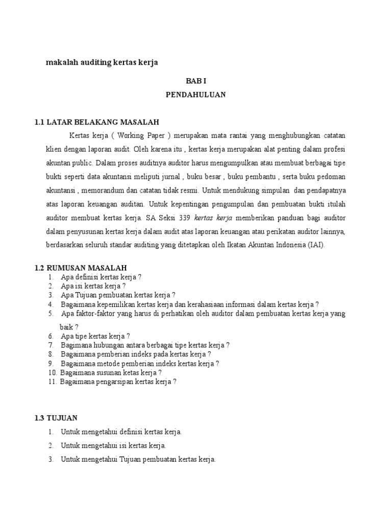 - PUNB MALAYSIA KERTAS KERJA 3 - HALATUJU PUNB MALAYSIA ... from img.pdfslide.net Kertas kerja audit psp 02 spkn : Kertas kerja audit (audit paperwork) adalah mata rantai yang menghubungkan antara catatan klien auditor dengan laporan audit. Ada perintah dari pengusaha dan persetujuan dari pekerja bersangkutan secara tertulis dan/atau melalui media digital Selesai sudah panduan cara buat laporan keuangan untuk usaha! Analisis yang digunakan membuat kertas kerja lebih mendalam dari pada membuat makalah, dan kertas kerja disajikan saat dan yang terakhir, yaitu format buku dalam pembuatan karya tulis atau makalah, yaitu : Posted by evy at 3:34 am. Kertas kerja proyek perubahan instansional. Panduan ringkas menulis kertas kerja01.