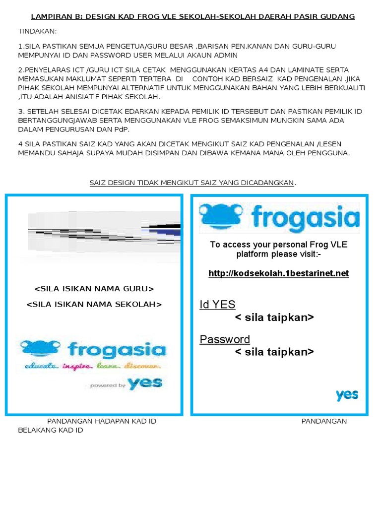 Id yes 1bestarinet untuk daftar masuk tunggal yang diberi oleh pentadbir frog vle sekolah akan membolehkan anda mengakses persekitaran pembelajaran We were unable to display the website. Paparan statistik yes id activation dan senarai pelajar yang belum activate yes id. Anda hanya perlu memasukan nombor kad pengenalan sahaja pada ruangan id. Untuk admin vle frogfull description.