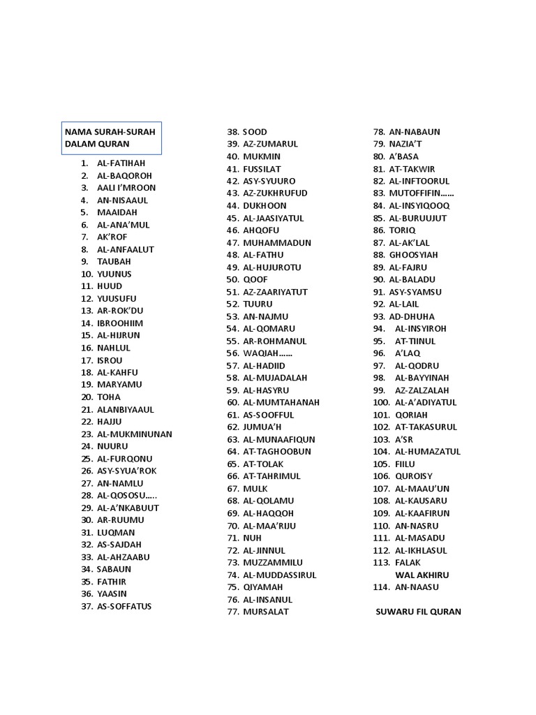 Related : Nama Surah Dalam Al Quran : Risalah Dakwah 073 Senarai Nama Surah Al Quran Semakan Bacaan / Hancaraka secara harfiah berarti ada utusan dari tuhan yakni seorang laki dan perempuan..